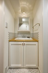 洗面化粧台は造作して、クラシカルな雰囲気にしました✨