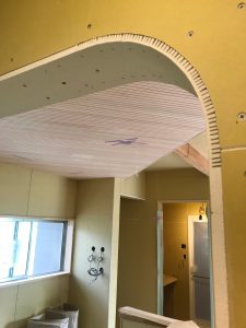 今回は何と石膏ボードにスリットを入れてカーブを作っています!