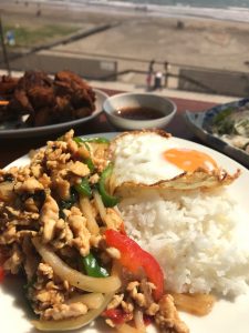 ランチは、海を見ながら、お腹いっぱいタイ料理を食べました。