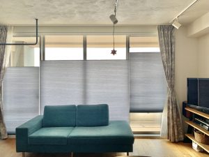 当時から窓装飾を悩まれ、既存のカーテンで過ごされていましたが、 コロナ禍で1日在宅ワークすることが増え、
