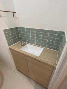 扉カラーに合わせて、タイルなどを施工することで、造作のようになりました♪