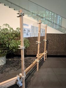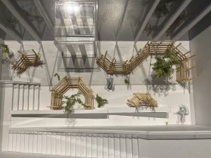45角の角材のみで作った展示スペースは