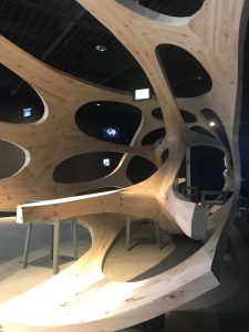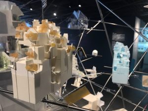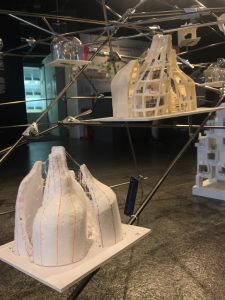 思考の雲をイメージした鉄柱に模型が展示されていました。