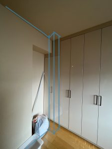 そこで、廊下の突き当たり部分も洗面室に取り込み、