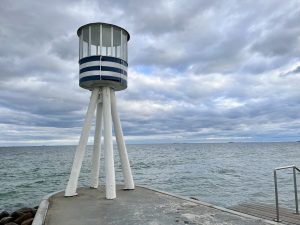 この白い更衣室やボーダーのかわいい監視塔も全てヤコブセンの設計。