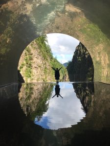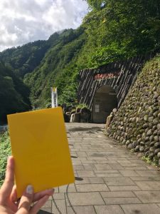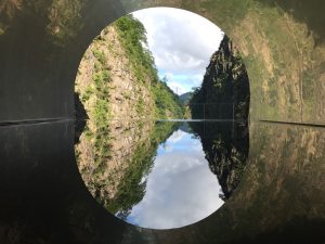 ミラーになっていて、外の渓谷が映り込んでいました!