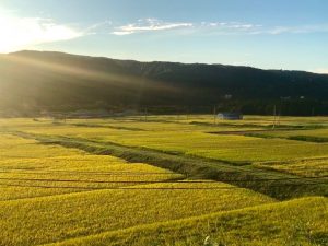 夕陽に照らされて黄金色に輝く稲穂.。.:*❇︎