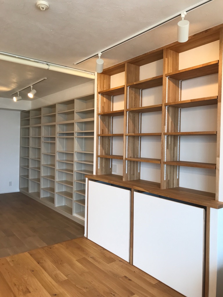 先日、建具屋さんより届いた造作のワゴン。 完成形を見てきました! . . . . 隣に置く、元々お使いのデスクに合わせて、 白いメラミン×オークの無垢の木口に。 . 中の棚板は可動式に。 A4...