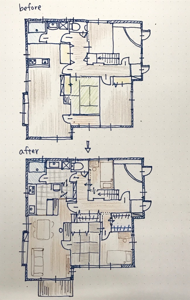先日、内部が完工しましたお家。 元々2世帯住宅だったご主人のご実家。 . 空いていた1Fに同居されることになり リフォームしました。 . 実は大きく間取りを変えていないのですが、随所に暮らしやすさをプラス...