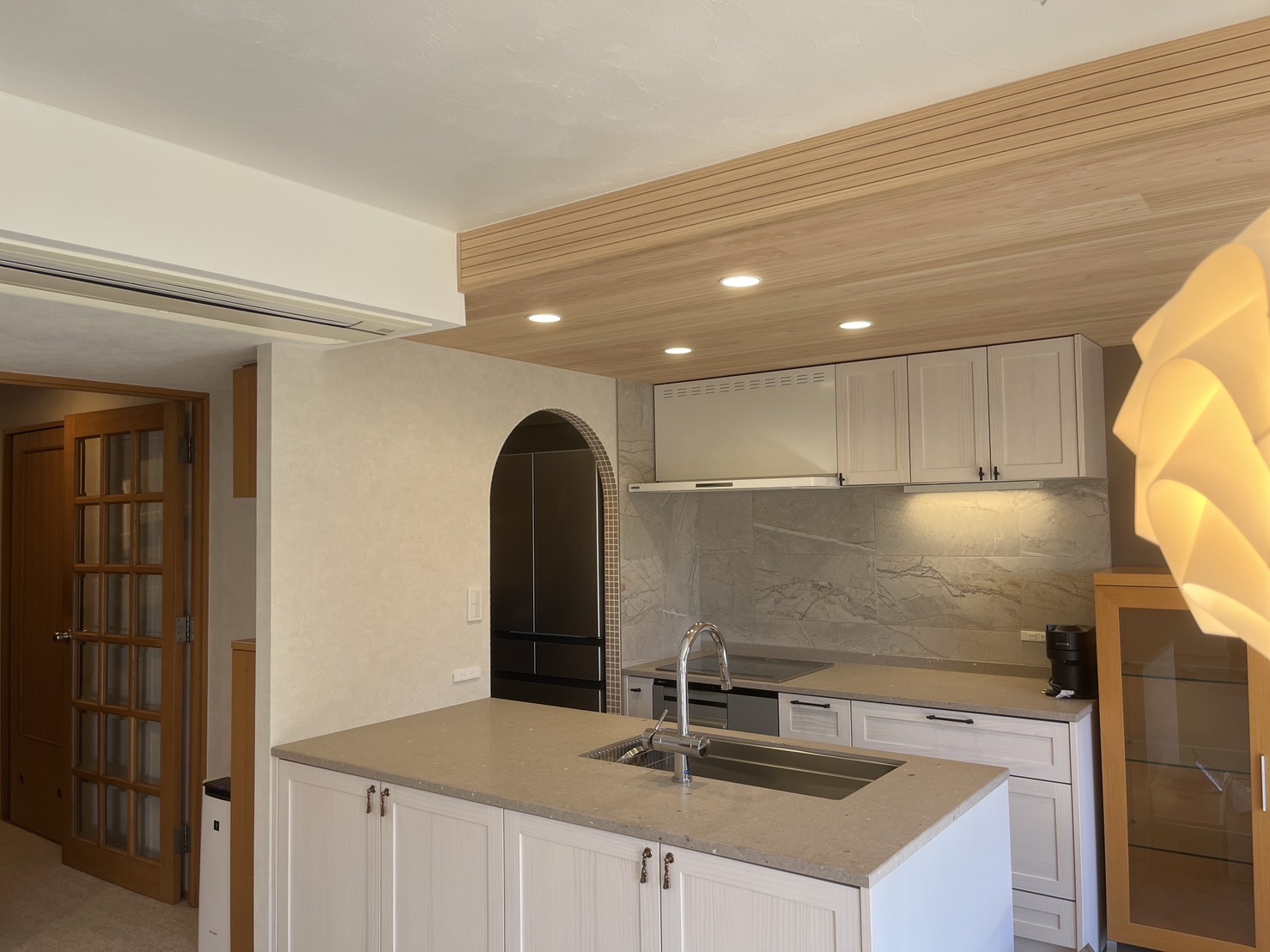 先日完工したお家。 . マンションのLDKの改装で、 大きくイメージを変えたのはキッチン。 . 料理研究家の行正り香さんのご自宅のような インテリアがお好きとご相談いただきました。 . そこに...