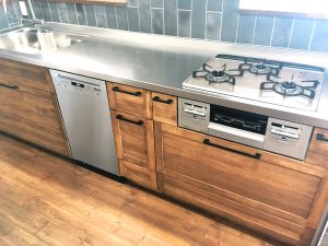 床に合わせて、弊社のロハスオイル/ミディアムブラウン塗装にしてもらっています◎