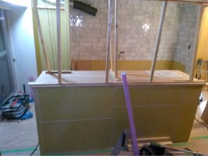 以前、接着固定の天井をご紹介しましたが、今回は逆バージョンをご紹介です♪ キッチン作業台の天板を腰壁に固定する為に、 再びつっぱり君達の登場です! 今日も元気に(?)ぐぬぬって(???)ます。 何故こんなにつ...