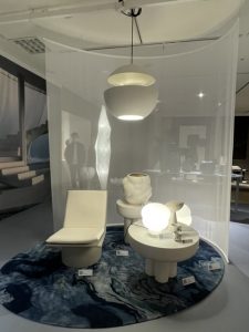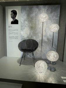 3枚目のカルテルのチェアと照明は日本人デザイナーの吉岡徳仁氏による作品。