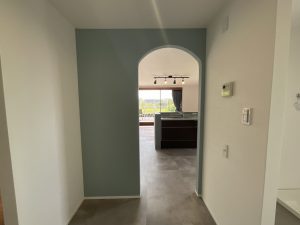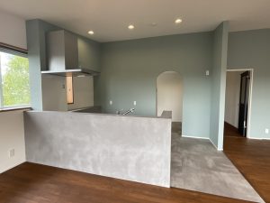 キッチンとユーティリティを繋ぐ動線はアーチの開口に