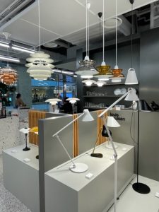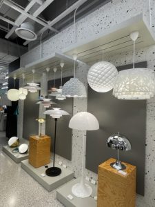 商業施設にこんなにずらっとルイスポールセンが並んでいる光景は