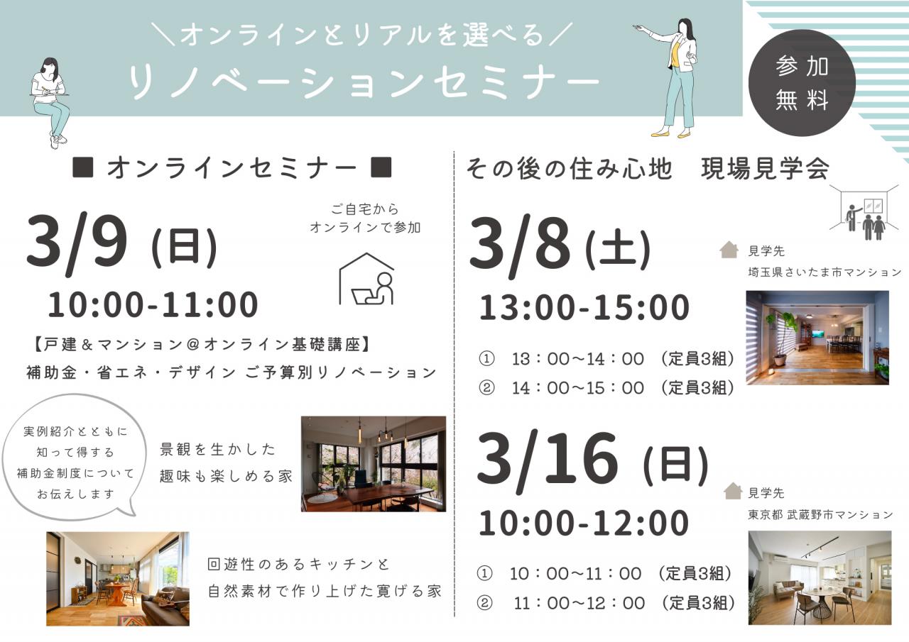 11月のLOHASstudioは、 「参加方法」や「知りたい内容」が選べるセミナー・現場見学会を開催いたします。 ///////////////////////// ◆リノベーションをお考えはじめた方向け◆ 11/9su...