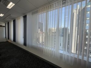 カーテンと縦型ブラインドの良い所どりをしたような斬新なカーテンです^^