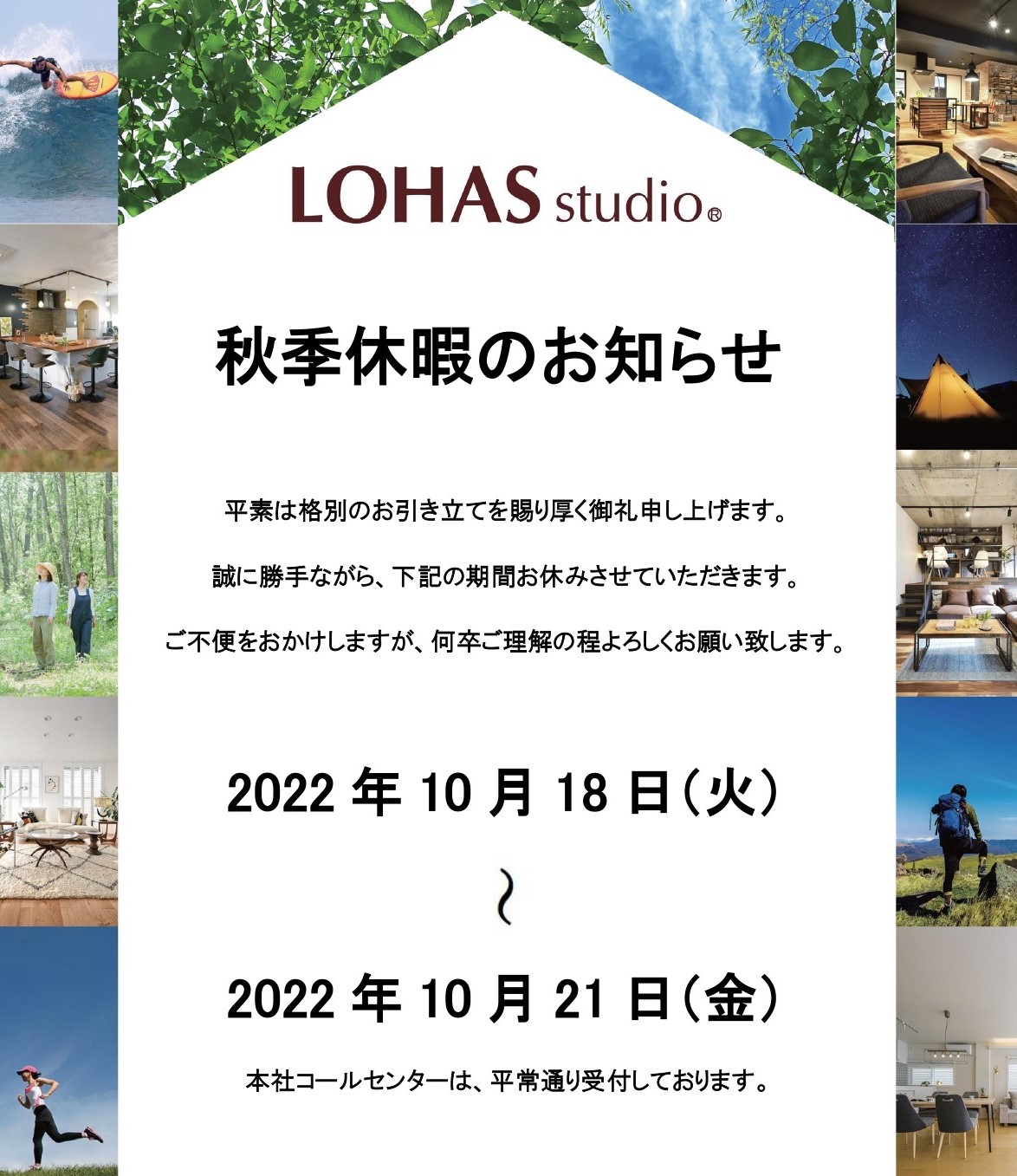 LOHAS studioでは、秋季休暇の期間を下記の通りとさせていただきます。