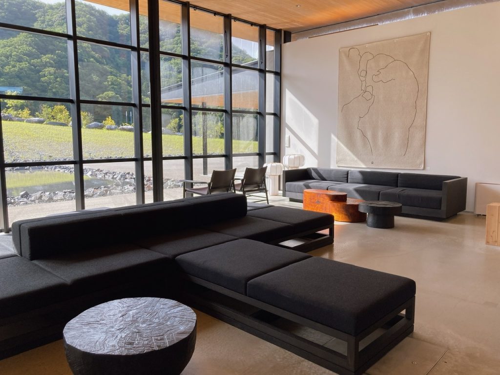 ▲自然光差し込むロビー シンプルな空間に、ブラックのソファが効いてる〜 かっこいい