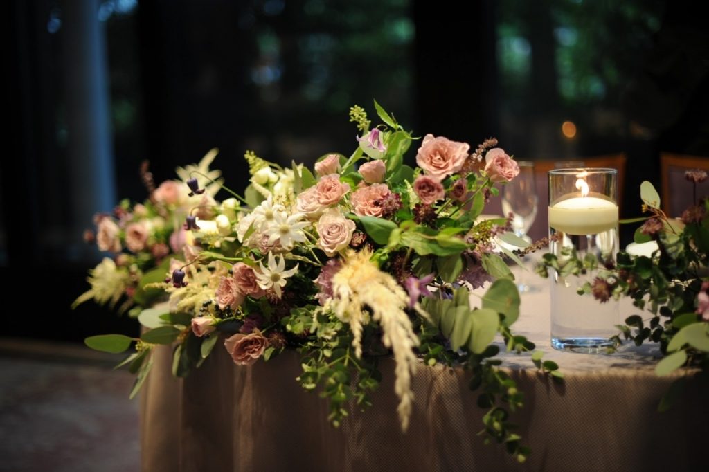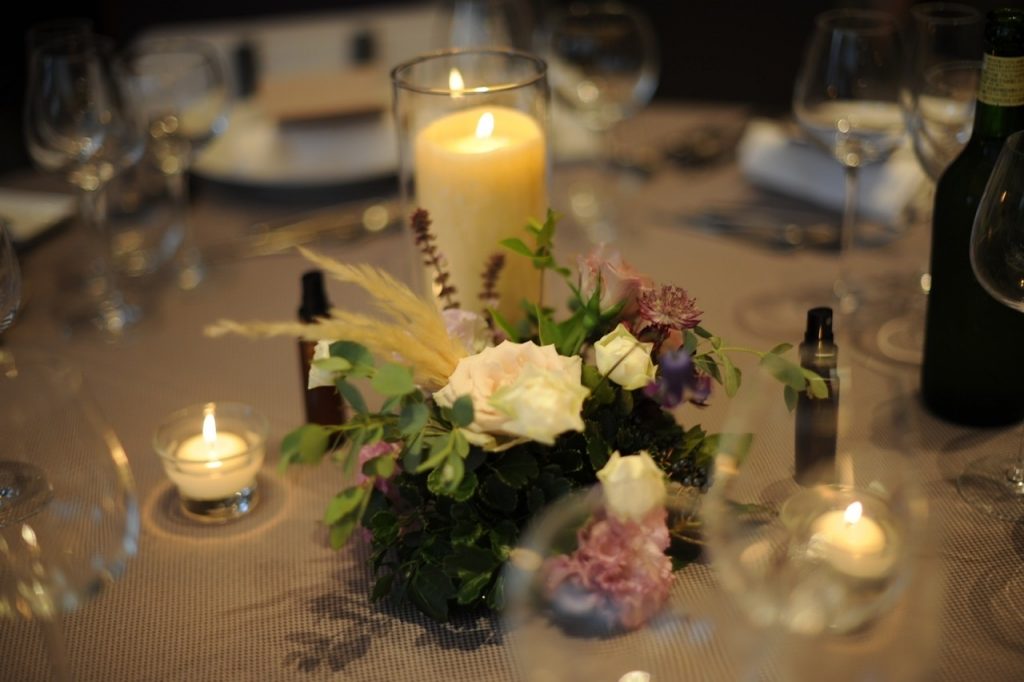▲装花の少し落ち着いた色味がまた会場の雰囲気にぴったり!