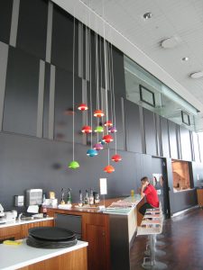 こちらはカラフルな照明をランダムに。ブラックの壁にとても良く映えています。もう国の入口からデザインの素晴らしさを感じる・・北欧ならではです(^^)