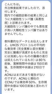まだ治療は始まったばかりですが、家族にもサポートしてもらいながら奏効に向けて頑張ります。