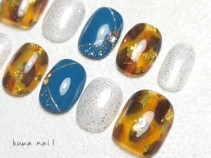 べっこう柄とネイビーが絶妙な配色のネイルチップ☆べっこう柄は結構冒険でしたが着けてみるとすごく素敵でした!