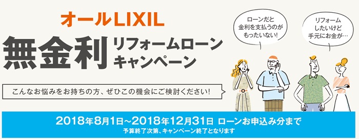 【オール LIXIL 無金利リフォームローンキャンペーン】