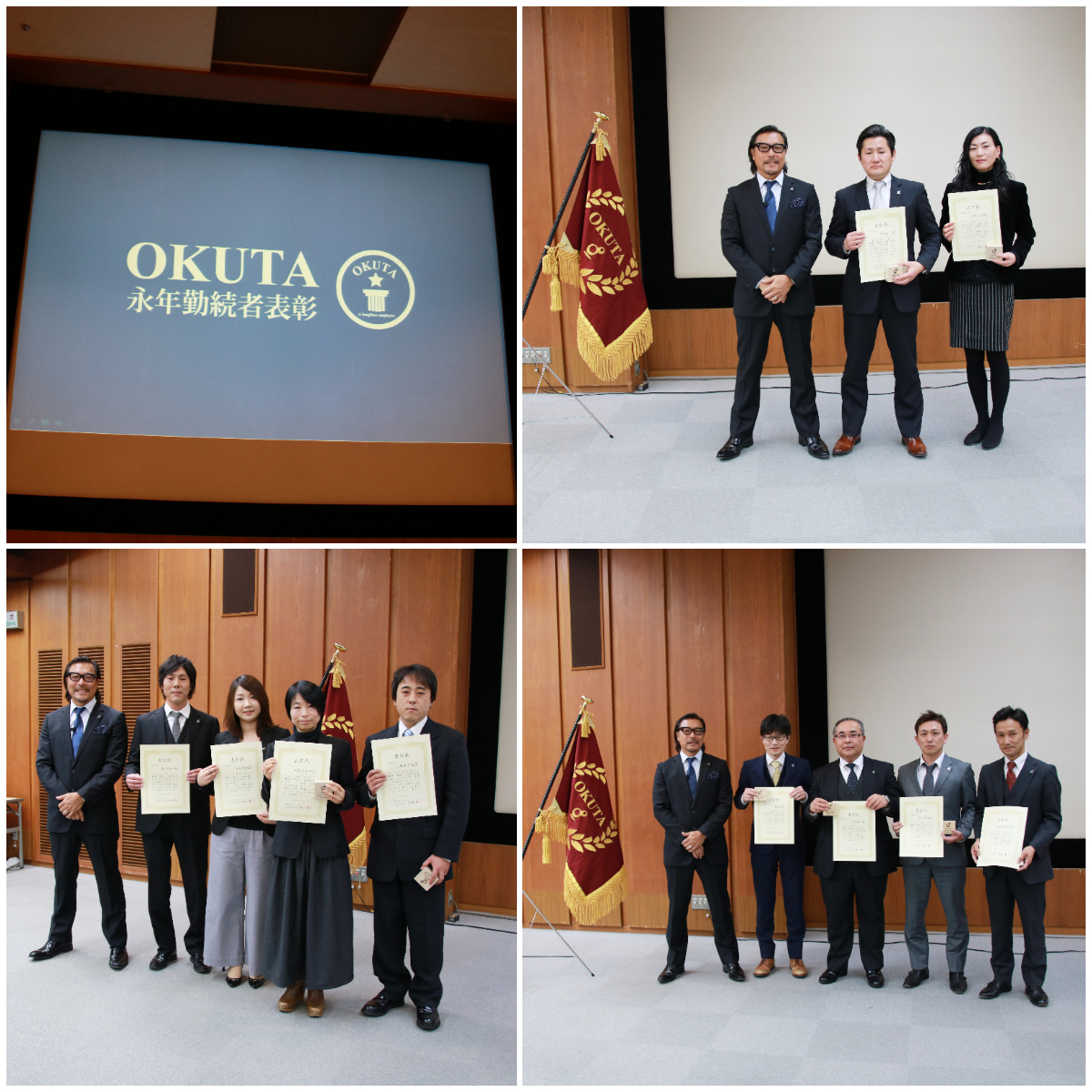 昨年の年間優秀社員の表彰、永年勤続者の表彰の発表、