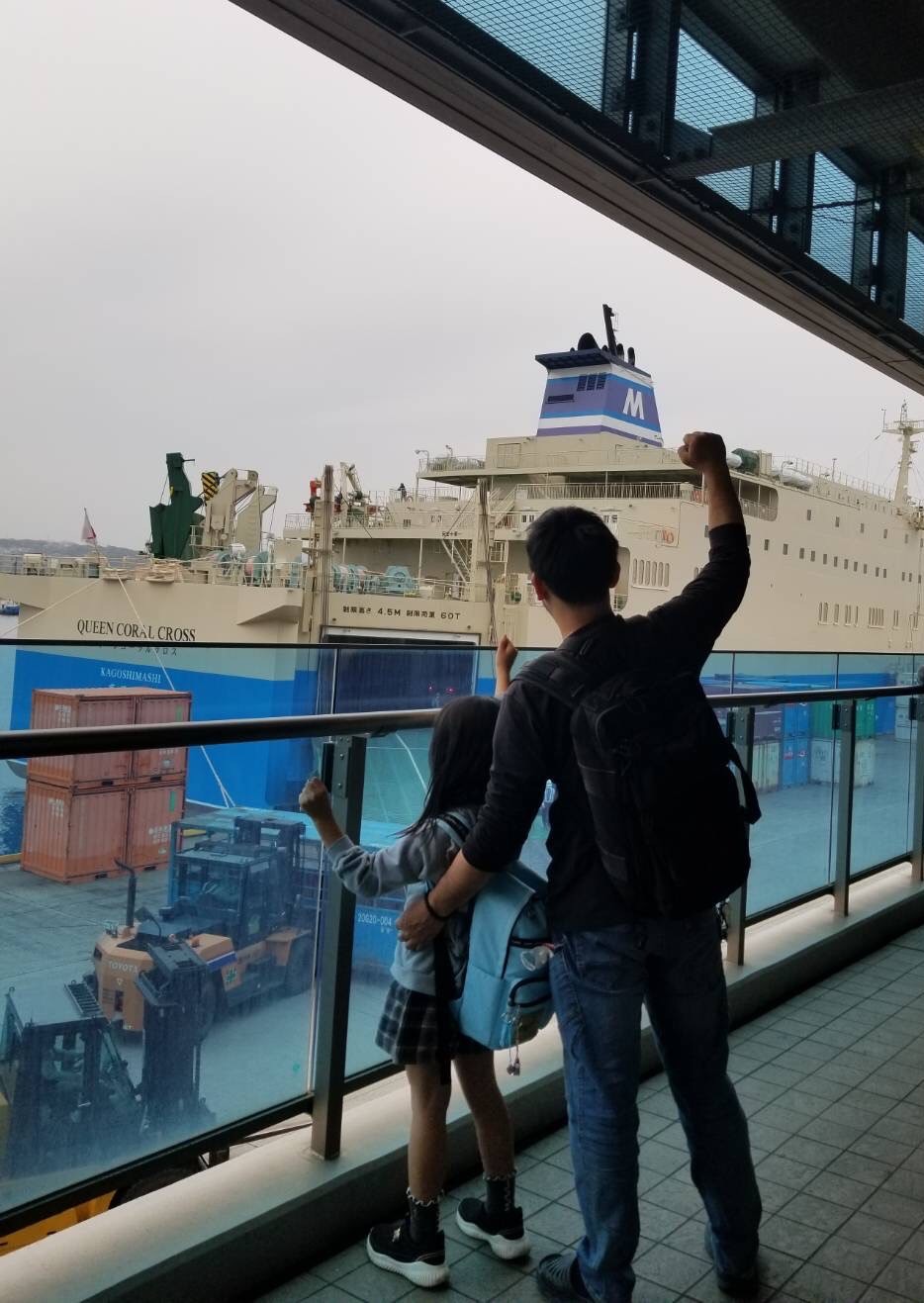 写真は、「ふるさとテレワーク」を行う社員と、フェリーにて徳之島へ出発する様子です。