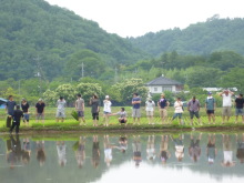 6/11、曇天の中、総勢80名以上が集まり、田植えの体験をしました。