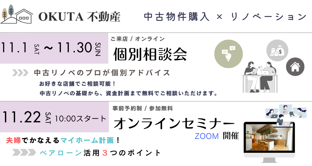 ◆イベント詳細◆ 家族でのマイホーム購入やリノベーションを考えている方向けの相談会です。 「ローンの組み方が不安」「教育環境も重視したい」「今の家がちょっと手狭になってきた」など、ご家族それぞれのライフスタイ...