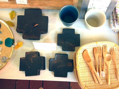器作家・飯高幸作さんの温もりある器や箸置きなどが並んでました。
