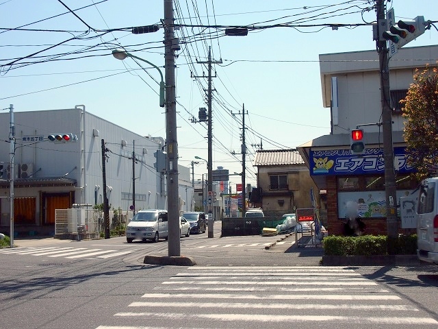 青木中学校の前を過ぎ… 青木五丁目の交差点 まで、てくてく2~3分。