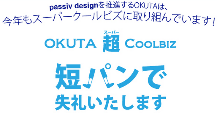 私たちOKUTAは、今年も6/1~9/30まで超(スーパー)クールビズに取り組んでいます!