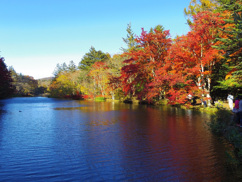 美しい水面に色とりどりの紅葉が映り、鮮やかな景色は目をみはりました。