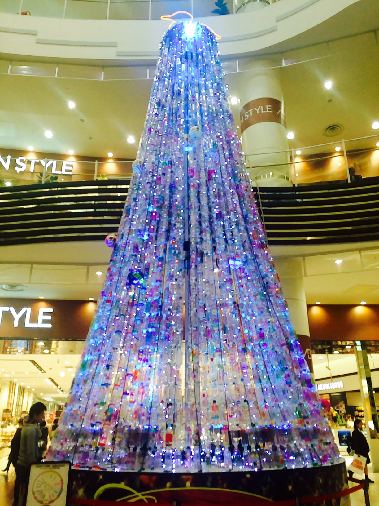 なんとこのツリーはペットボトルで作られているそうなのです!