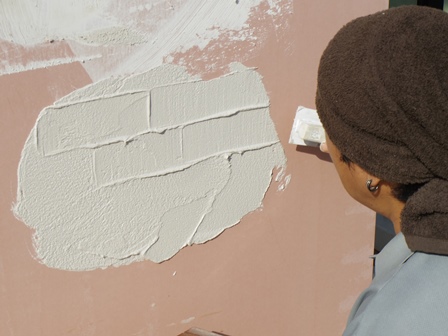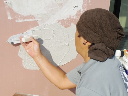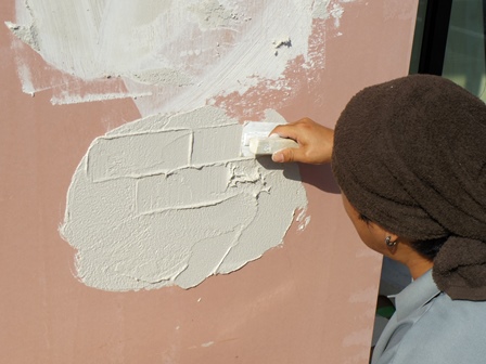 昨日は空いている時間に、施工スタッフにいろいろな珪藻土の塗り方のパターンを見せてもらいました。