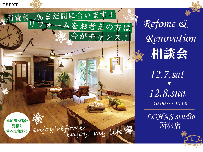 本日から2日間、LOHAS studio 所沢店にてリフォーム相談会を開催しています。