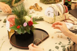 お正月用アレンジメントの制作模様をお届けさせていただきます。