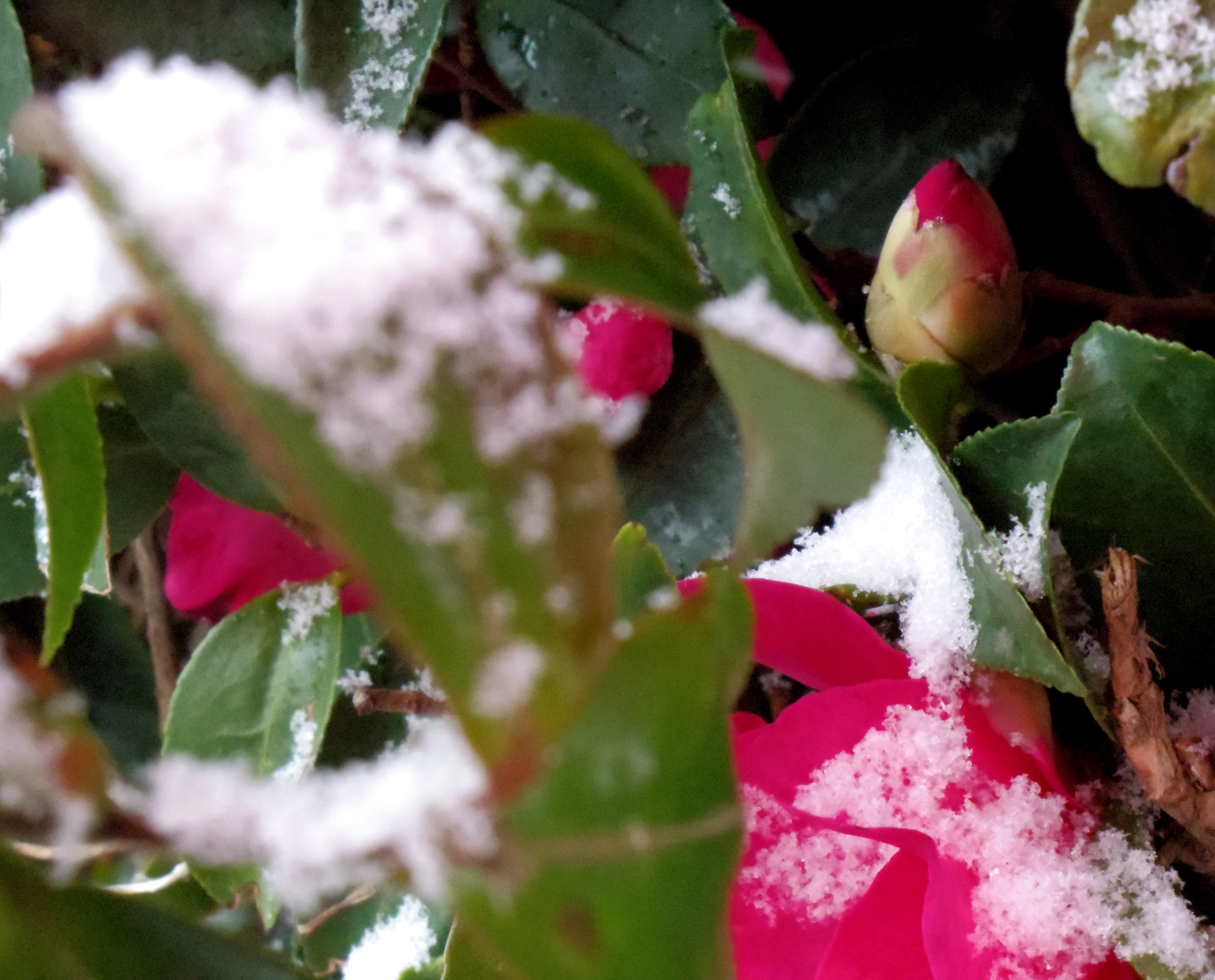 スタジオ近くに咲いている椿にも雪が積りはじめました。