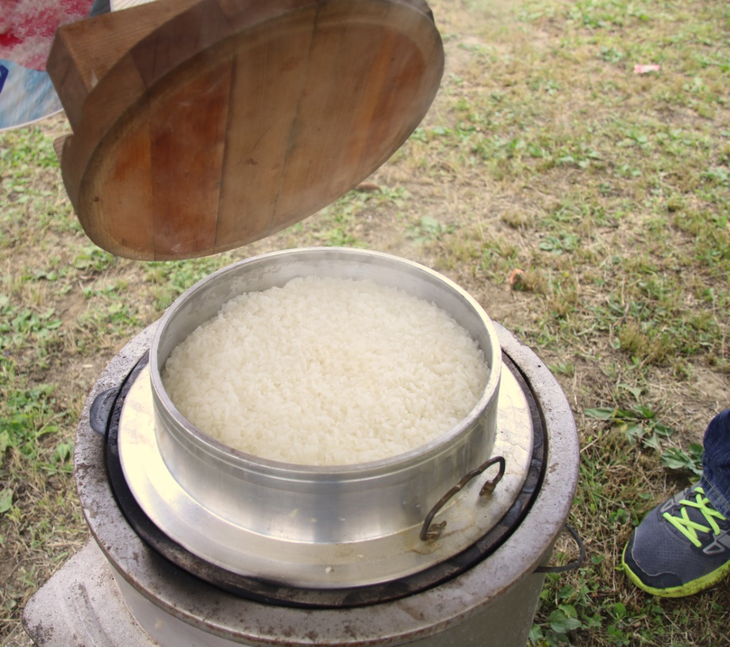 田植え後のお昼は、有機野菜のカレーとサラダを頂きました。