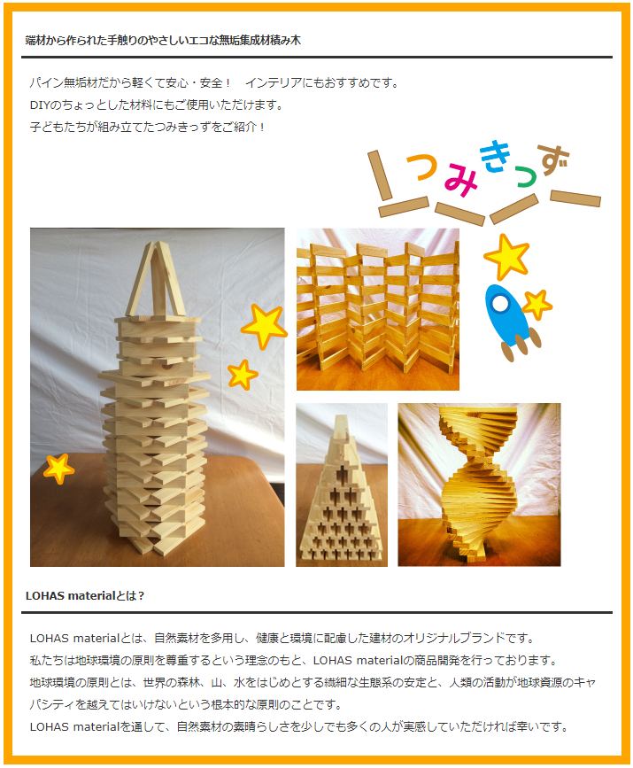 パイン材の端材で作られた「 つみきっず 」