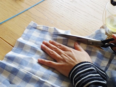 生地を選んだら帯状にちょきちょきとカットしていきます。