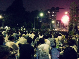 夕方からは交通規制が入り、道路もこの通り歩行者天国となって観覧席に。