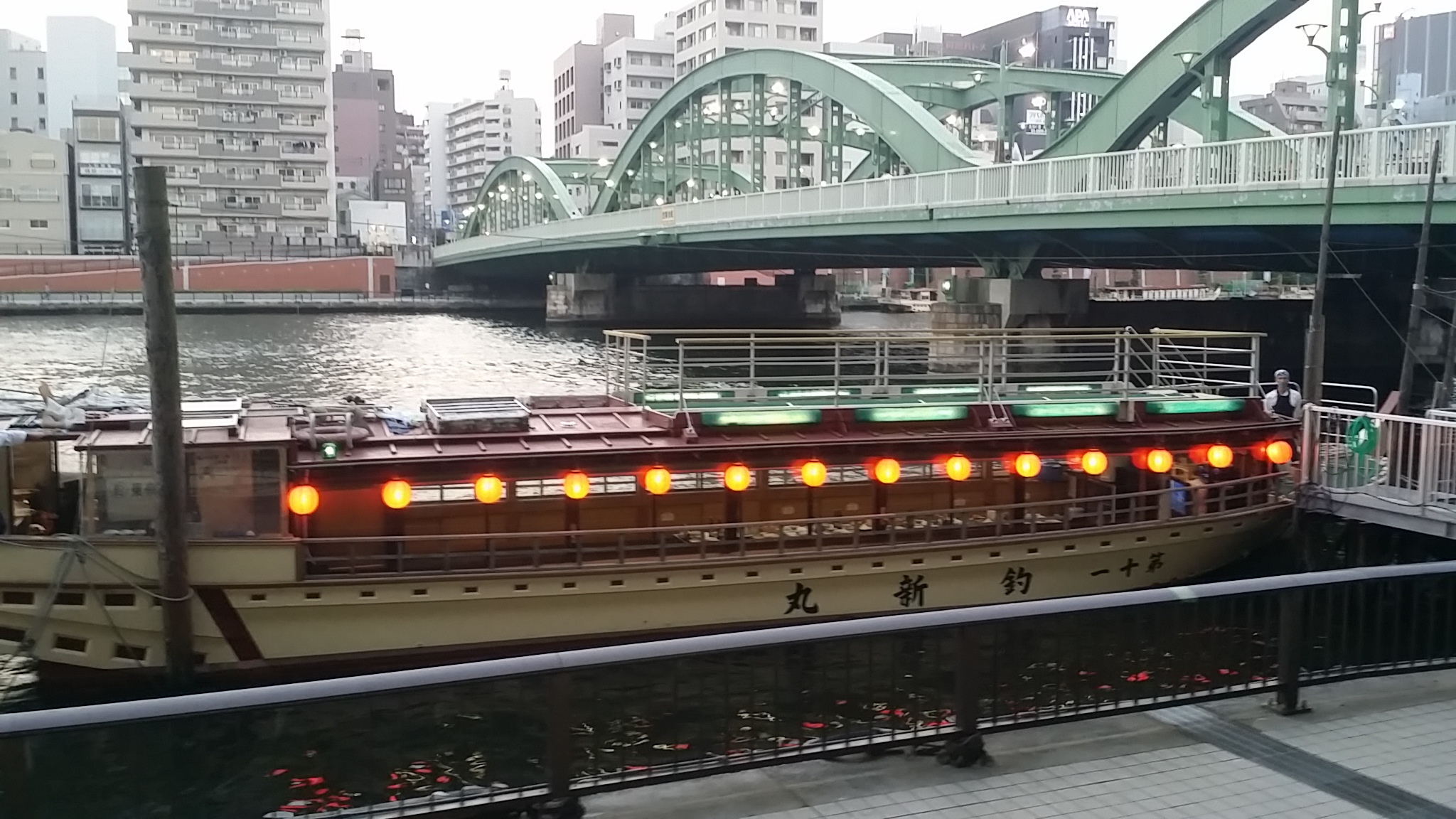 すると、そこにスカイツリーに負けないくらい華やかな屋形船が通ったので、一緒にカシャっ!