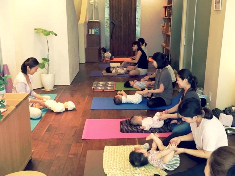 お子様と向き合い、コミュニケーションを取りながらマッサージやヨガを行っていきます。