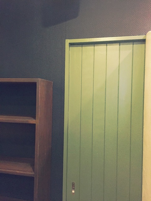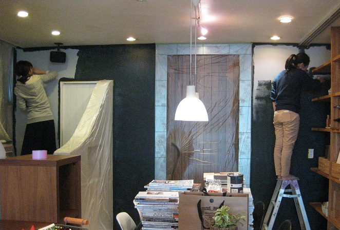こちらはスタジオ奥の壁ですが、塗替え前は薄めのブルーでした。