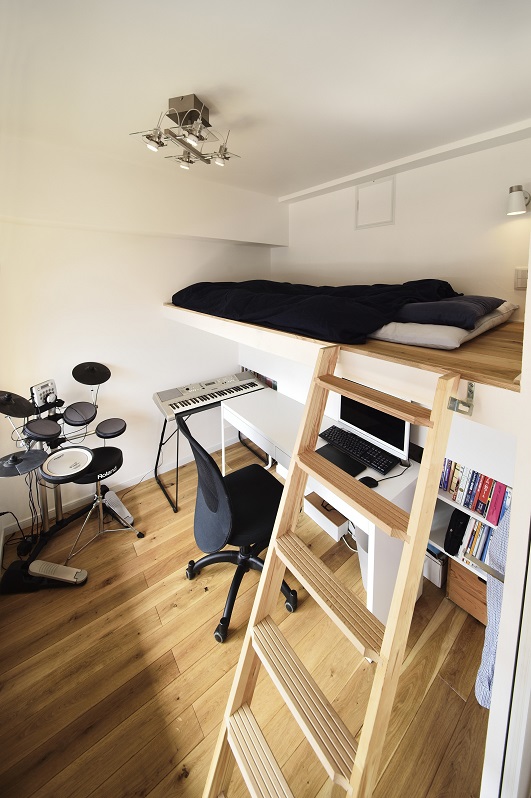 造作したそうです。ベッドが上にあると、空間を有効活用できて素敵ですね☆