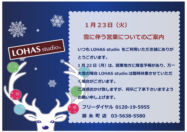 万が一の場合に備えまして、錦糸町店は本日これよりスタジオクローズとさせていただきます。